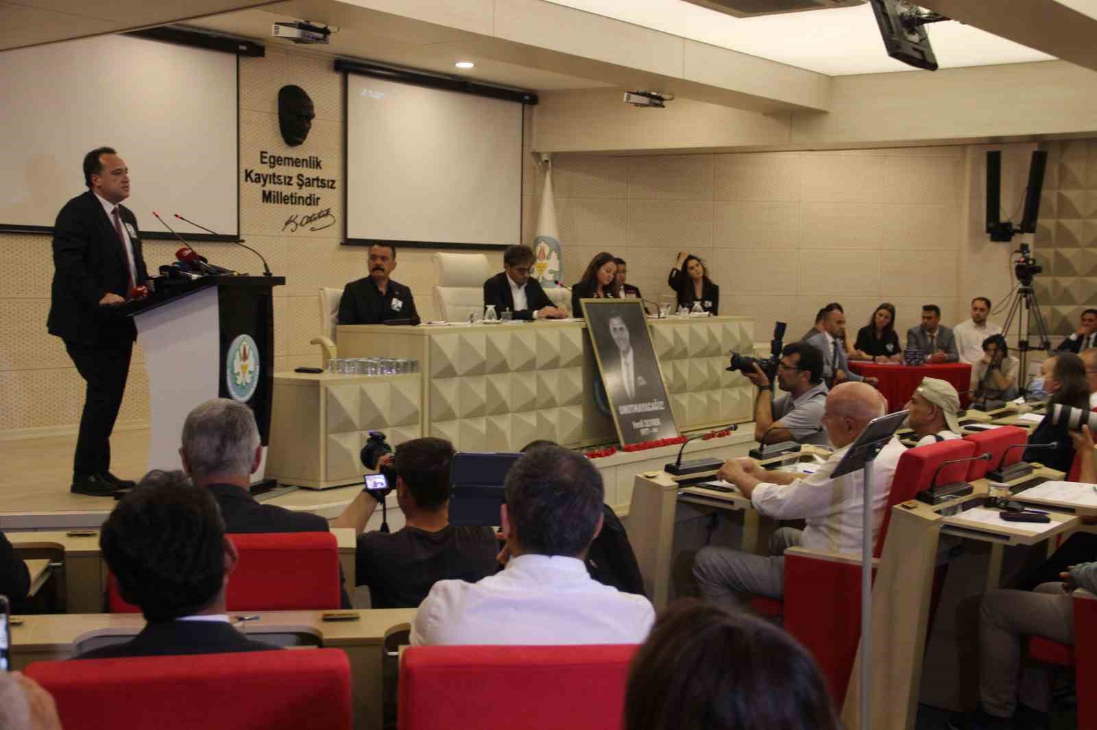 Yoklama ile meclis toplantısını açan Manisa Büyükşehir Belediye Başkan Vekili Ahmet Anıl Ceylan, “Bir meslektaşımı her şeyden önemlisi çok iyi bir dostumu kaybettim ve onun bana verdiği görevle bugün en zor vazifemi yapacağım. Onun Manisa için kurduğu hayalleri bir bir yerine getirmek için hep beraber çalışacağımızdan şüphem yok. Zor bir meclis olacak hepimiz için ama kanun gereği bunun bugün yapılması gerekiyordu” diye konuştu.