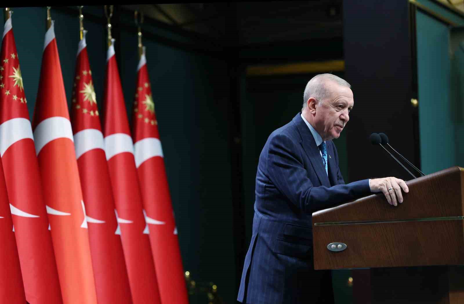 Bölgede yaşanan tüm krizlere rağmen milletin dertlerine derman olmanın gayretinde olduklarını vurgulayan Erdoğan, “Deprem bölgemizin yeniden inşa ve ihyası gündemimizin ilk sırasındaki yerini korumaktadır. Şimdiye kadar 201 bin konutun anahtarını hak sahibi kardeşlerimize teslim ettik. İnşallah perşembe günü Kahramanmaraş’ta 250 bininci afet konutunun da anahtarlarını depremzede kardeşlerimize teslim edeceğiz” dedi.
