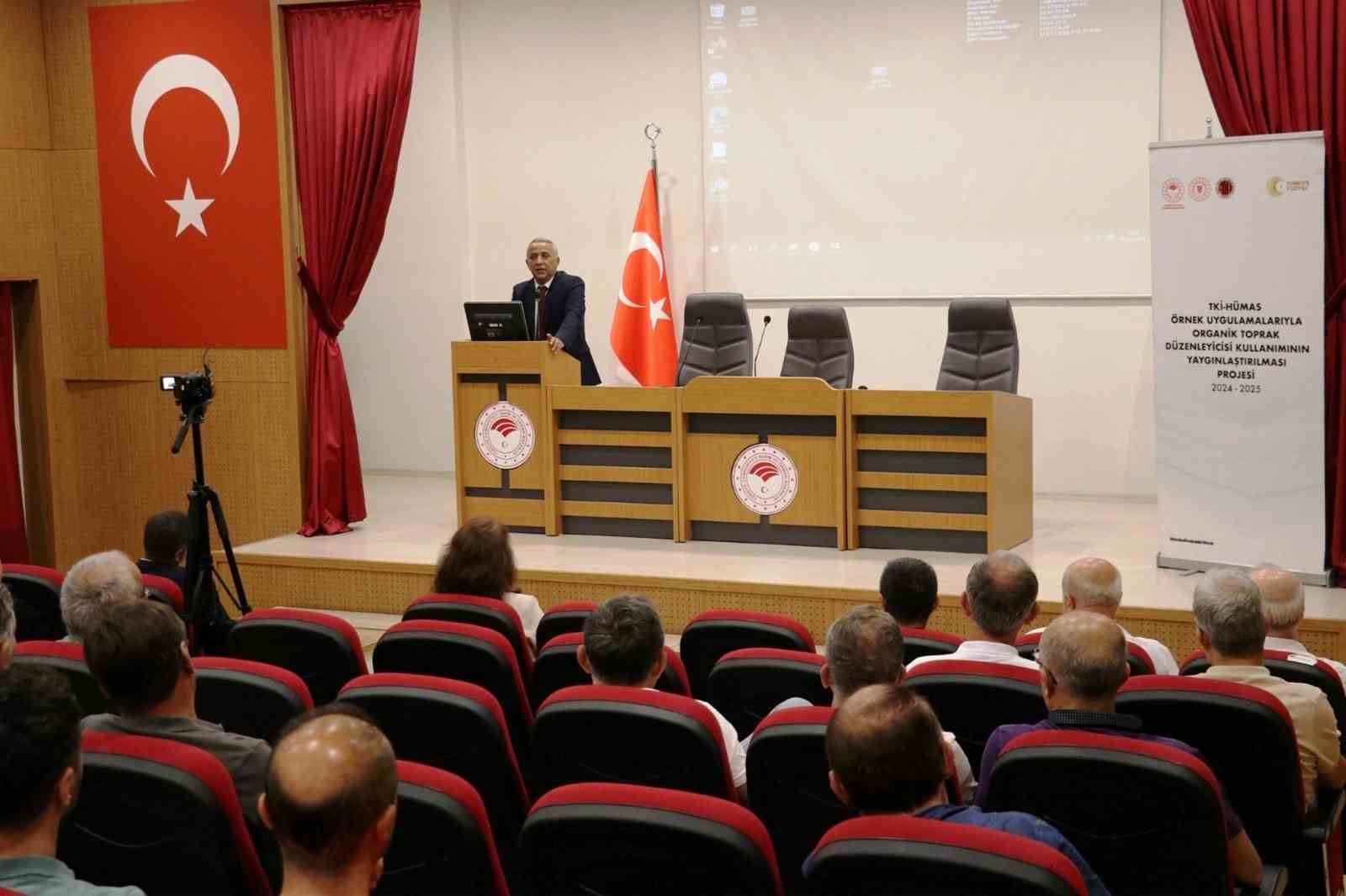 “TKİ-Hümas Örnek Uygulamalarıyla Organik Toprak Düzenleyicisi Kullanımının Yaygınlaştırılması” konulu eğitim toplantısı ve uygulaması Samsun’da yapıldı. İl Tarım ve Orman Müdürlüğü Toplantı Salonu’nda TKİ-Hümas Örnek Uygulamalarıyla Organik Toprak Düzenleyicisi Kullanımının Yaygınlaştırılması Projesi kapsamında düzenlenen eğitim toplatışında konuşan İbrahim Sağlam, tarımsal üretimde önceliklerinin toprağı korumak olduğunu ifade etti.
