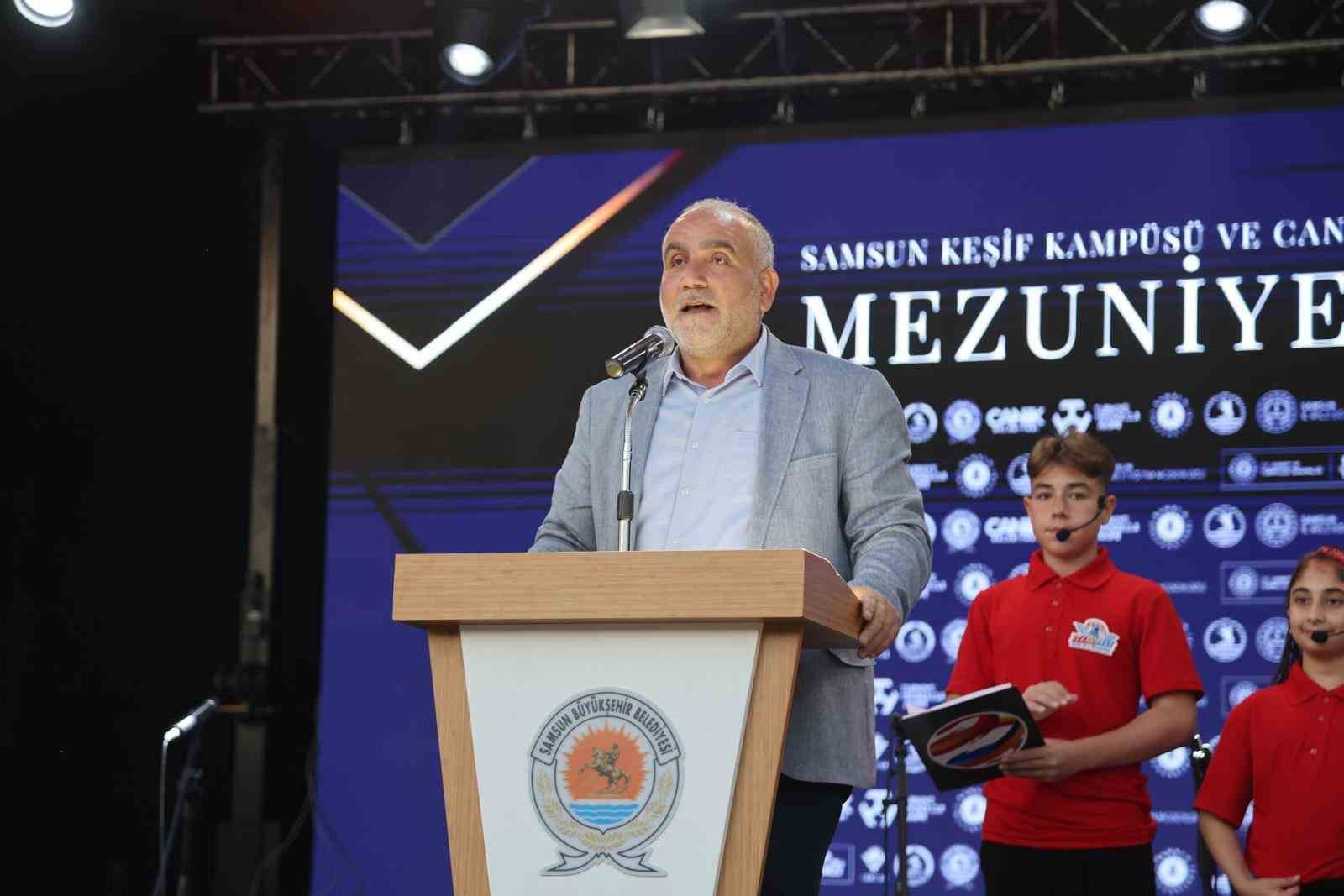 Bilim ve teknoloji dolu nesiler yetiştirme hedefiyle yola çıkan Samsun Büyükşehir Belediyesi’ne bağlı Samsun Keşif Kampüsü ve Canik Belediyesi’ne bağlı Canik Özdemir Bayraktar Keşif Kampüsü ilk mezunlarını verdi. Samsun Büyükşehir Belediyesi ile Canik Belediyesi iş birliğinde ve T3 Vakfı’nın destekleriyle yürütülen proje kapsamında, iki yıl boyunca çeşitli atölyelerde eğitim alan öğrenciler mezuniyet coşkusunu doyasıya yaşadı.