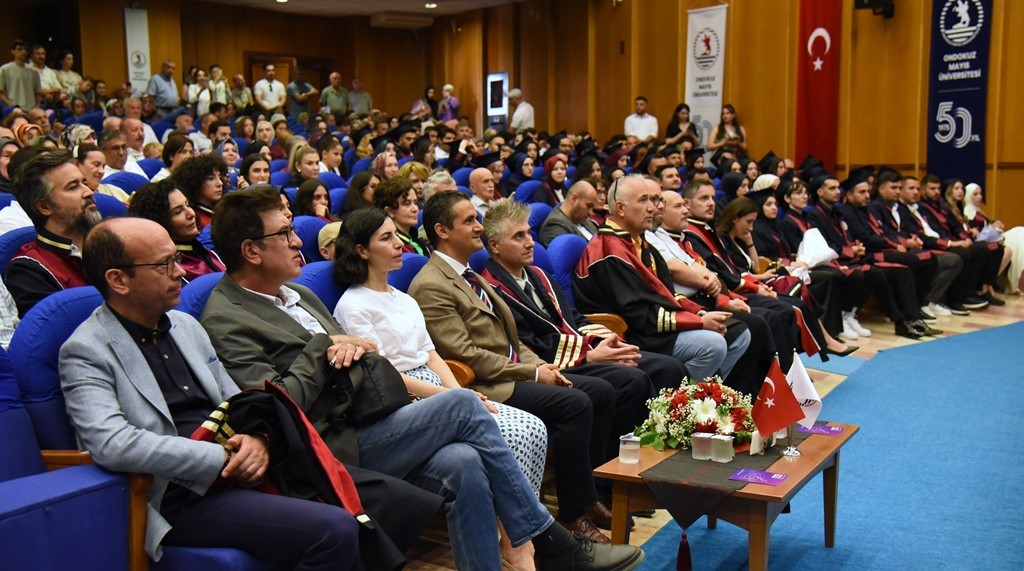 Saygı duruşu ve İstiklal Marşı’nın okunmasıyla başlayan törende konuşan Rektör Yardımcısı Prof. Dr. Çetin Kurnaz, “Sevgili mezunlarımız, bugün, uzun bir emeğin ve azmin sonucu olarak hayallerinize bir adım daha yaklaştınız. Aldığınız bilgi ve değerlerle sadece mesleğinizin değil, toplumun da mimarları olacağınıza inancım tam. Yolunuz açık, ufkunuz aydınlık olsun. OMÜ ailesi olarak sizlerle gurur duyuyoruz. Başarılarınız daim olsun” dedi.