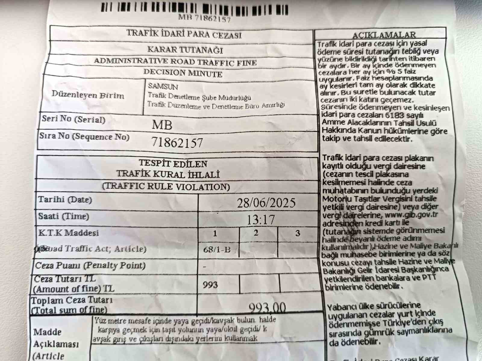 Yaya geçidini kullandığı için ceza yiyen S.A., “Yasak yerden geçtiğim için ceza yazdılar. Yakında yaya geçidi var. Buradan karşıya geçtim. Kaç lira ceza yazdıklarına da bakmıyorum” diyerek polislere sitem etti.