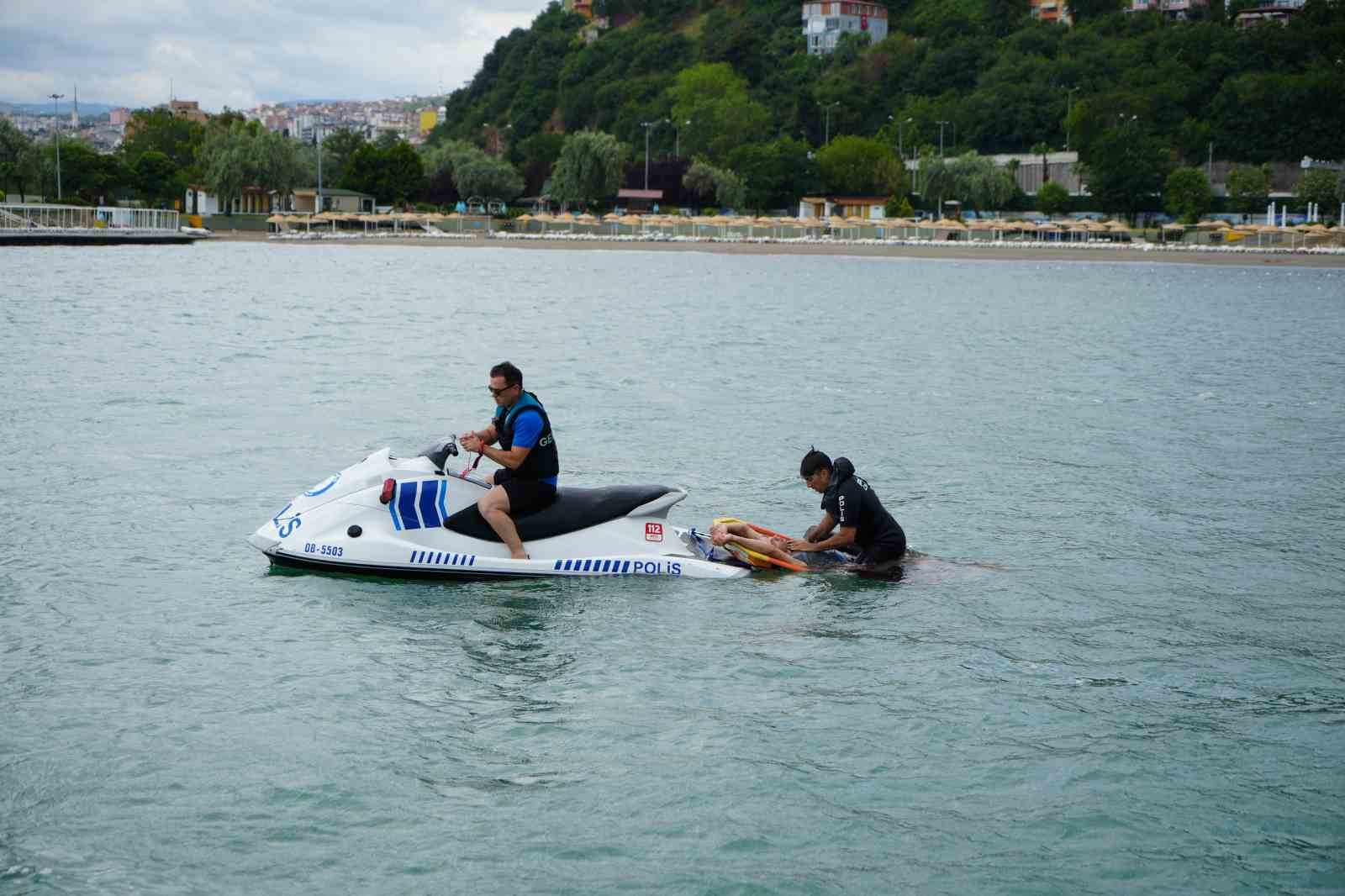 Boğulma olaylarının sık görüldüğü Karadeniz sahillerinde Samsun Emniyet Müdürlüğü’ne bağlı deniz polisleri muhtemel can kayıplarını önlemek için her an teyakkuzda bekliyor. Gerçek bir vaka senaryosuyla yapılan eğitimler ve tatbikatlarla tetikte olan deniz polisleri, hayat kurtarma nöbetlerini sürdürüyor.