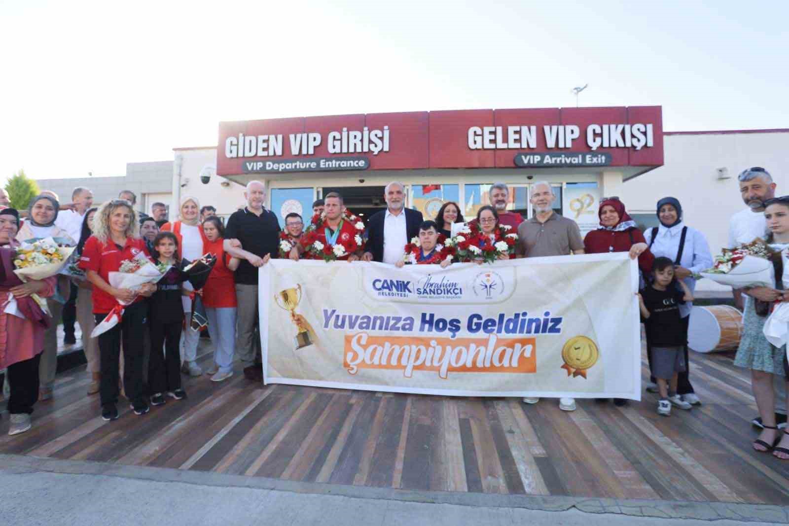 Avrupa şampiyonu sporcular Ali Topaloğlu, Salihcan Öztankal, Mehmet Yasin Bayraktar ile Çorum’dan şampiyonaya katılan Merve Peker, Samsun Çarşamba Havalimanı’nda protokol üyeleri ve aileleri tarafından coşkulu bir şekilde karşılandı.