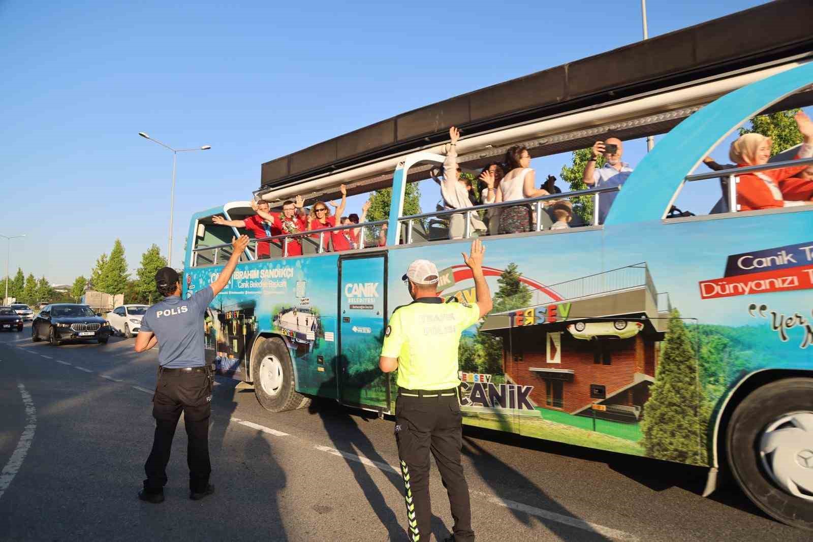 Karşılama töreninin ardından sporcular, kentte üstü açık otobüsle şehir turu yaparak coşkularını vatandaşlarla paylaştı. Sokaklarda vatandaşların yoğun ilgisiyle karşılanan sporcular, tebrikleri kabul etti.