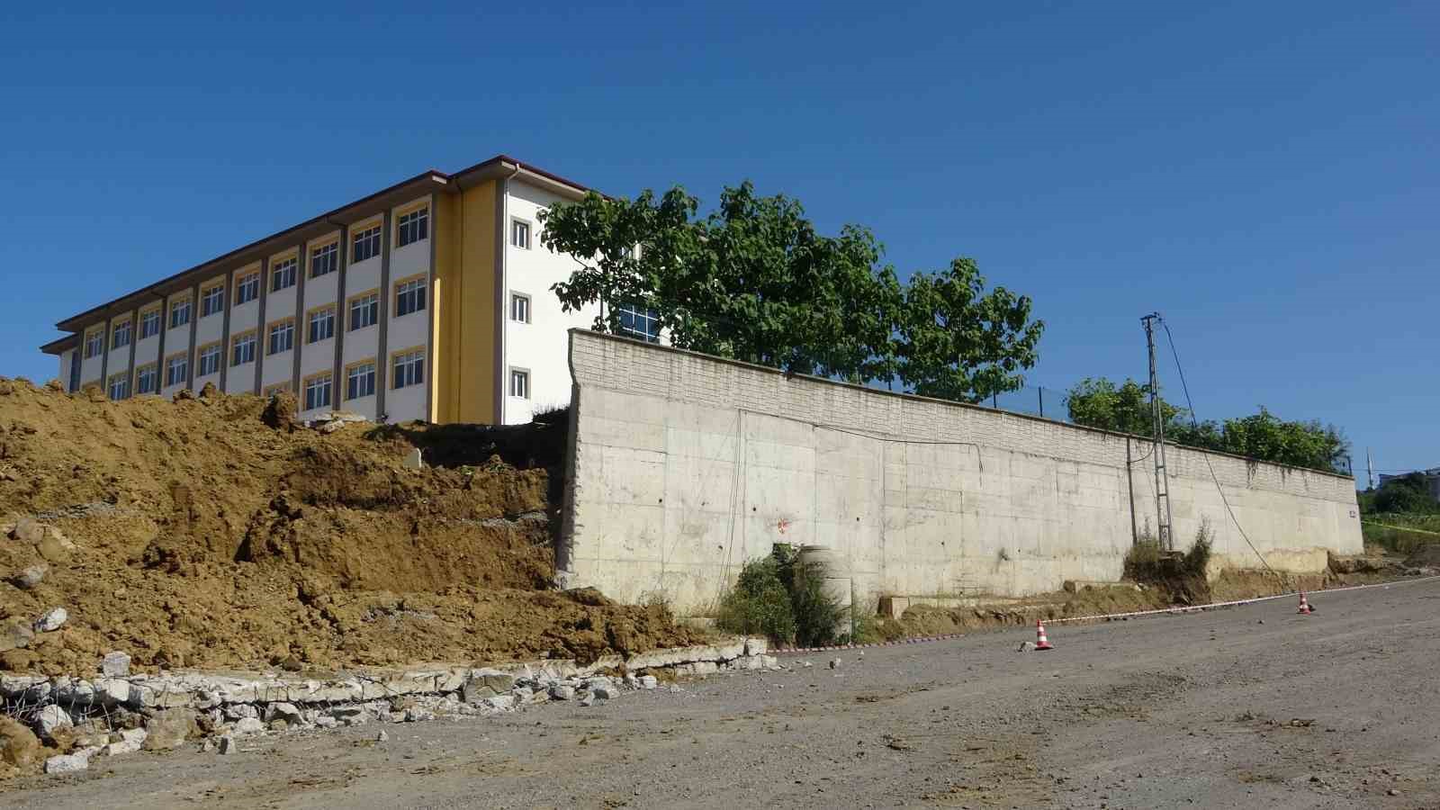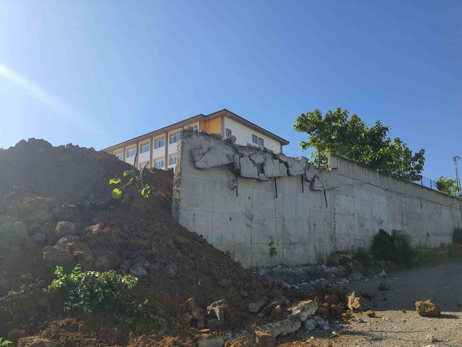 Samsun’da yoğun yağışların ardından çatlaklar oluşan bir lisenin bahçe duvarı, yıkılma riski taşıdığı için kontrollü şekilde yıkıldı.