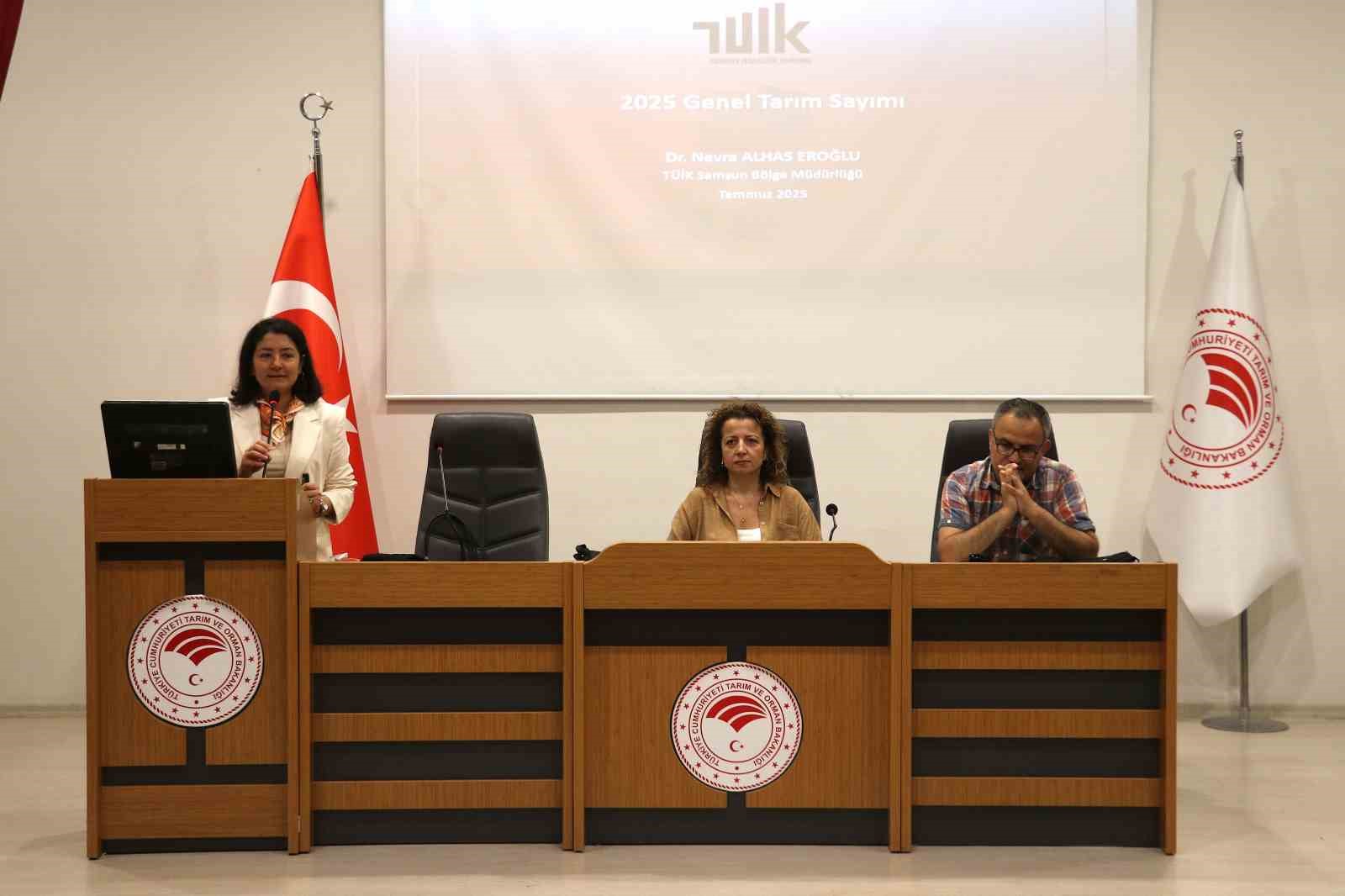 Samsun İl Tarım ve Orman Müdürü İbrahim Sağlam, Genel Tarım Sayımı’nın önemi hakkında yaptığı konuşmada, “Genel Tarım Sayımı çalışmaları, TÜİK sorumluluğunda ve bakanlığımız iş birliğinde 1 Temmuz-31 Aralık 2025 tarihleri arasında yapılacaktır. Tarımsal verilerin sahadan derlenmesi çalışmalarında görev alacak il ve ilçe müdürlüklerimizden personellerin eğitimleri tamamlanmıştır. Bundan sonraki süreçte de hem sürdürülebilir bir kayıt sistemi kurma çalışmalarına temel altlık oluşturulması, hem cari istatistiklerin geliştirilmesi hem de yürütülecek tarım politikalarına ışık tutacak yapısal verilerin ortaya konması Samsun ili ve Ülkemiz için büyük önem arz etmektedir” dedi.