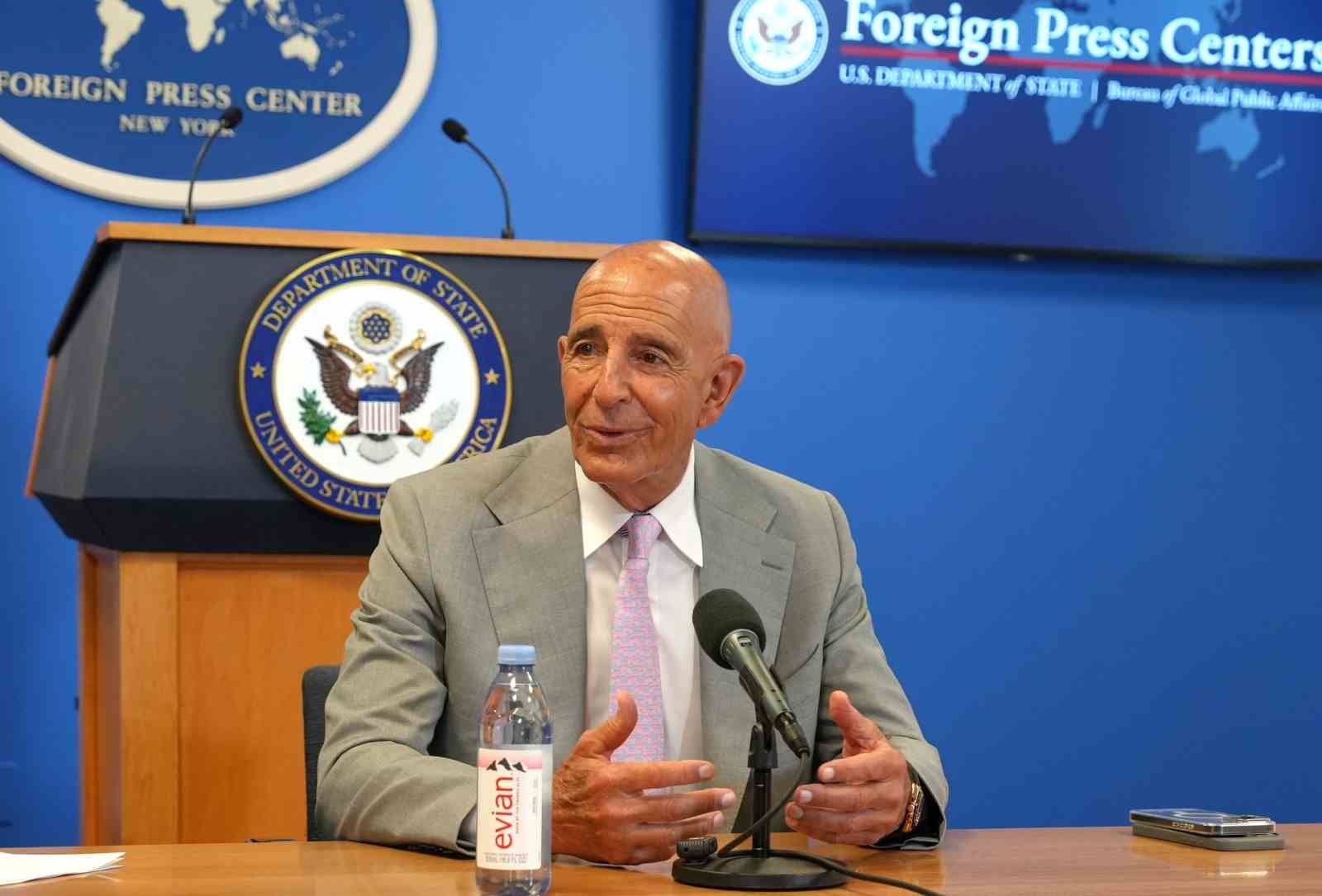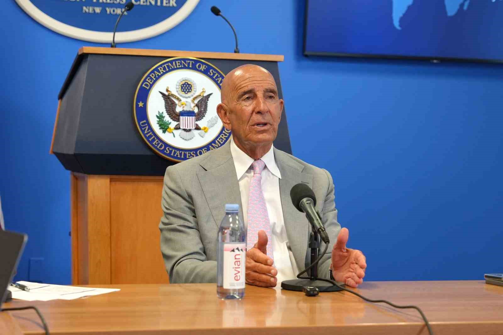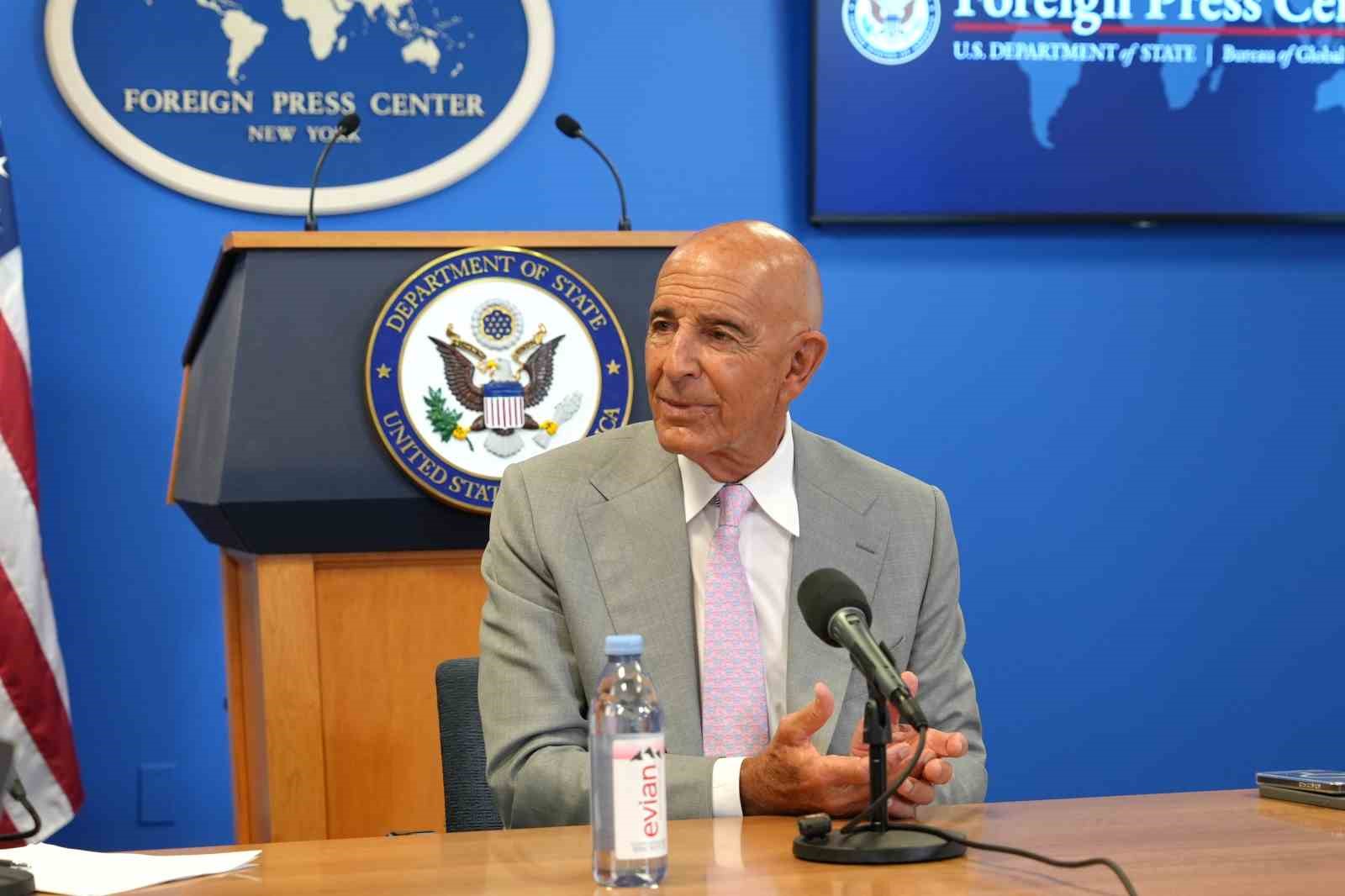 ABD’nin Ankara Büyükelçisi ve Suriye Özel Temsilcisi Thomas J. Barrack, ABD Dışişleri Bakanlığı’nın New York Yabancı Basın Merkezi’nde basın toplantısı gerçekleştirdi. Büyükelçi Barrack, Türkiye, Suriye ve bölgesel güvenlik politikaları hakkında açıklamalarda bulundu. Gazetecilerin sorularını da cevaplayan Barrack, ABD’nin Orta Doğu yaklaşımını, Türkiye’nin rolünü ve terör örgütü PKK/YPG/SDG konusundaki tavrını ayrıntılı şekilde ortaya koydu.