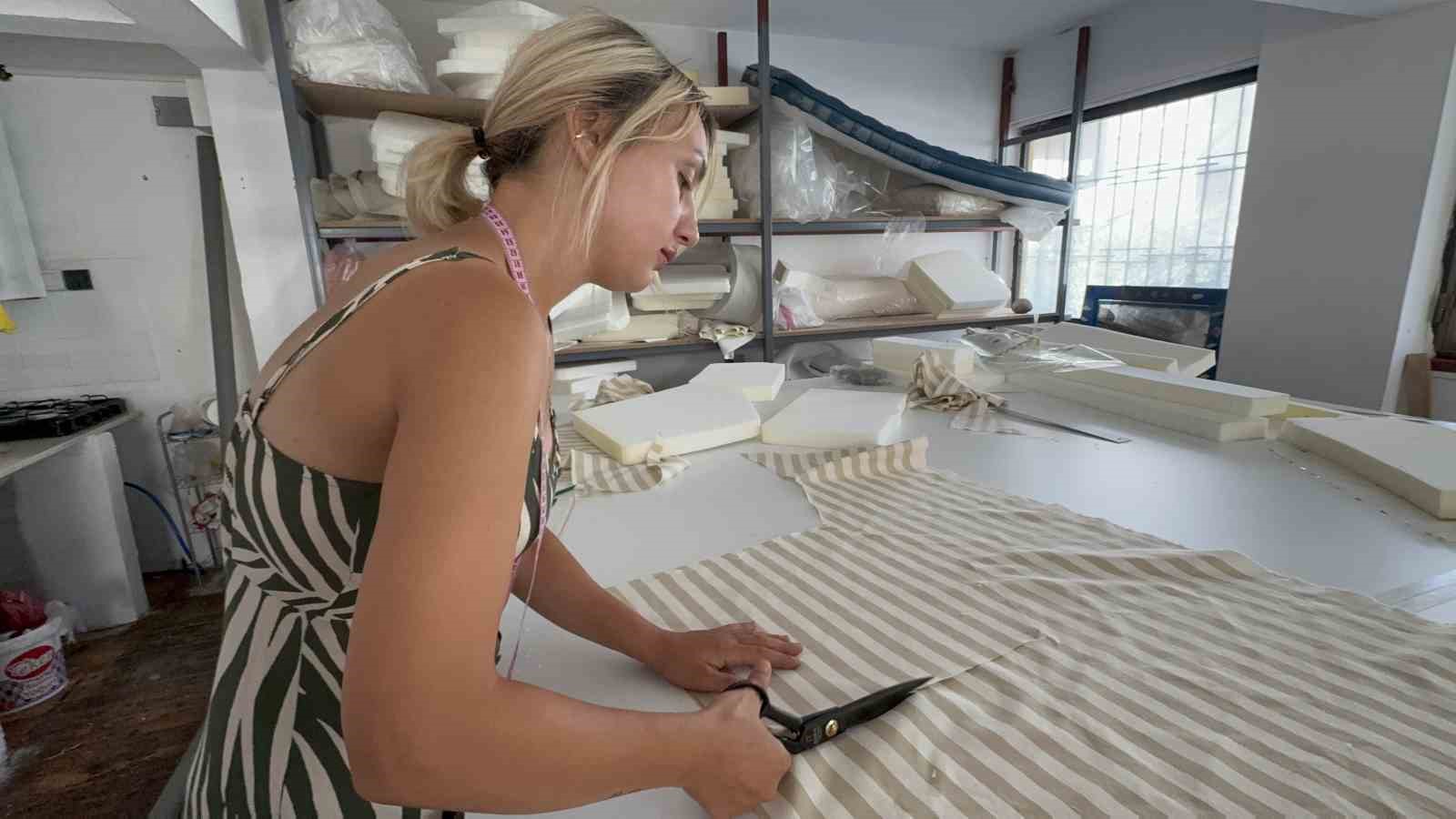 İki yıl önce İstanbul’dan Muğla’nın Marmaris ilçesine taşınan stilist Cansu Akcan, erkek egemen bir alanda kendi işini kurarak dikkat çekiyor. Tekne çadırları, minderleri ve marin döşemeleri üzerine çalışan Akcan, mesleğini “hayalim” dediği denizle buluşturdu.