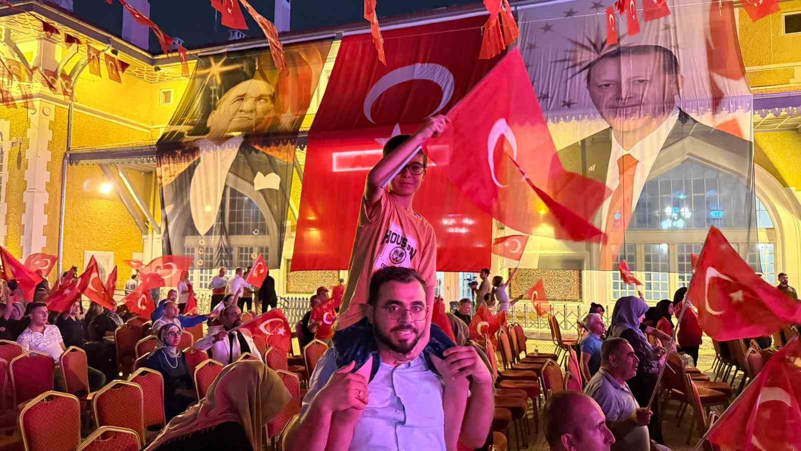 Konuşmaların ardından Cumhurbaşkanı Recep Tayyip Erdoğan’ın Ankara’da yaptığı konuşma sinevizyondan izlendi. Etkinlikte çeşitli şarkılar ve ilahiler seslendirilerek, şiirler okundu.
