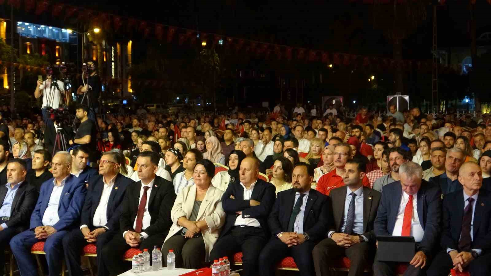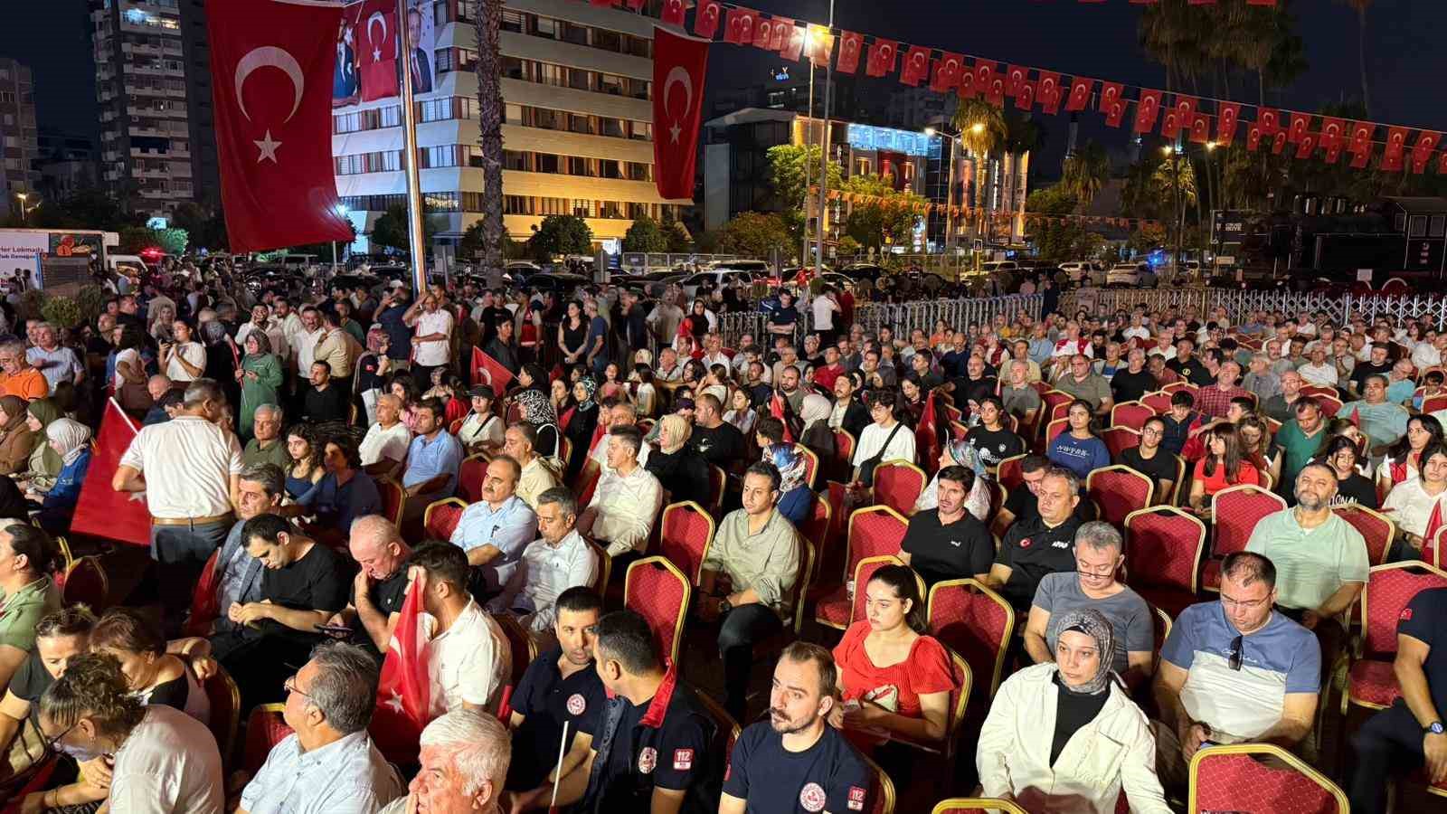 Programda konuşan Adana Valisi Yavuz Selim Köşger, “Adana’da milletin memlekete vatana bayrağa istiklale istikbale sahip çıktığı meydanda 15 Temmuz’un 9. yıl dönümünü kutluyoruz. Aynı şuurla aynı heyecanla ve aynı duygularla bu meydandayız. Sıcak iklim şartlarına rağmen Adanalılar meydanı doldurmuş durumda. Coğrafyamız kan gölü. Bizi bu topraklardan atmayı emel edinenler var. Bu millet üzerinde oyunlar bitmiyor. Bu vatan bizimdir ve bizim kalacak. Bu şuuru gençlere aktarmamız lazım” dedi.