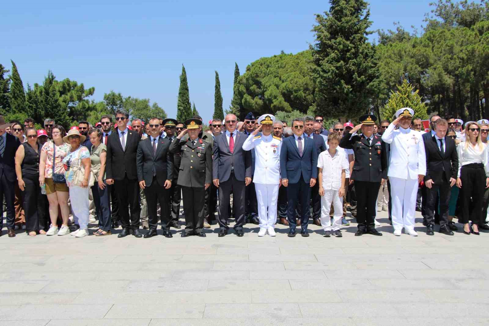 Şehitler Abidesi’nde düzenlenen anma programına, Çanakkale Valisi Doç. Dr. Ömer Toraman, Çanakkale Boğaz ve Garnizon Komutanı Tuğamiral Mustafa Biçen, Çanakkale Savaşları Gelibolu Tarihi Alan Başkanı İsmail Kaşdemir, Çanakkale İl Emniyet Müdürü Kenan Kurt, Çanakkale İl Jandarma Komutanı Kıdemli Albay Ersin Aslan, Sahil Güvenlik Batı Marmara Grup Komutanı SG. Yb. Orhan Öğrenci, askeri erkan, daire müdürleri, protokol üyeleri ve çok sayıda vatandaş katıldı.