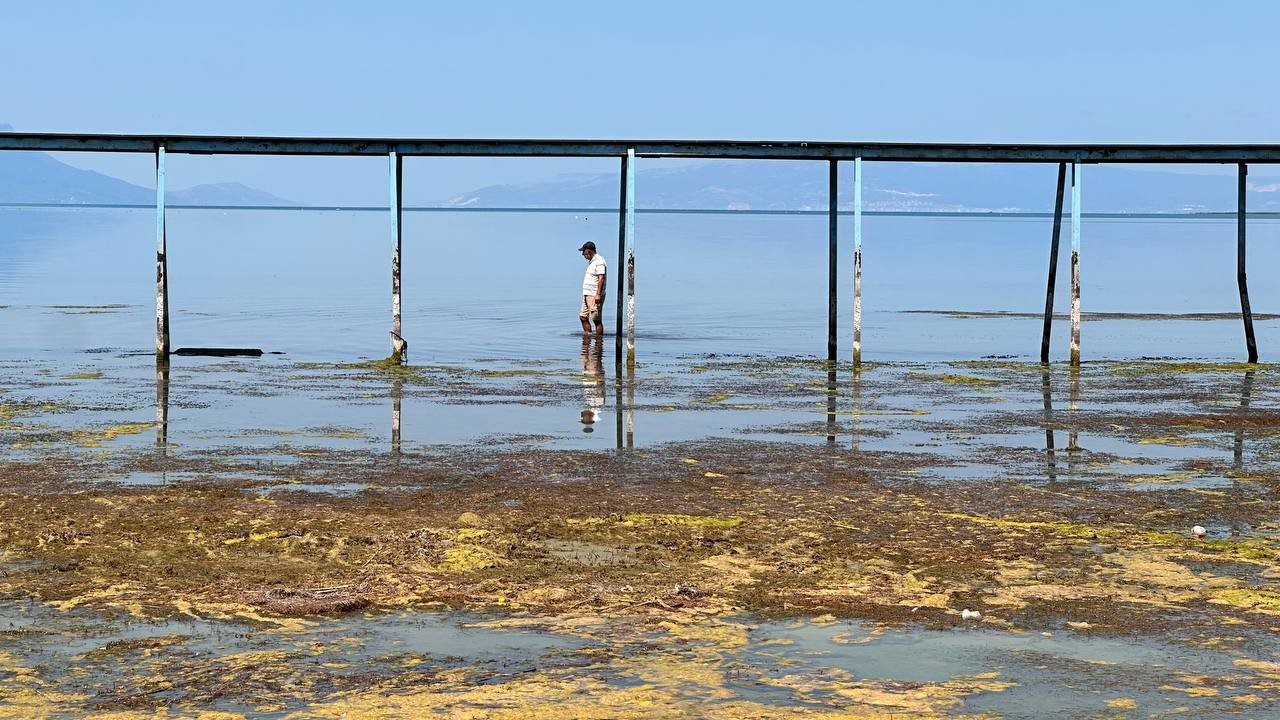 Emekli öğretmen Suat Yıldız, “Biraz önce iskelenin çevresini yürüyerek dolaştım. Su benim diz kapağıma bile gelmemektedir. İskeleye oturduğumda ayaklarının suya değdiği dönemleri biliyorum. Aynı zamanda kıyıdaki faciayı ortaya koyuyor” ifadelerini kullandı.