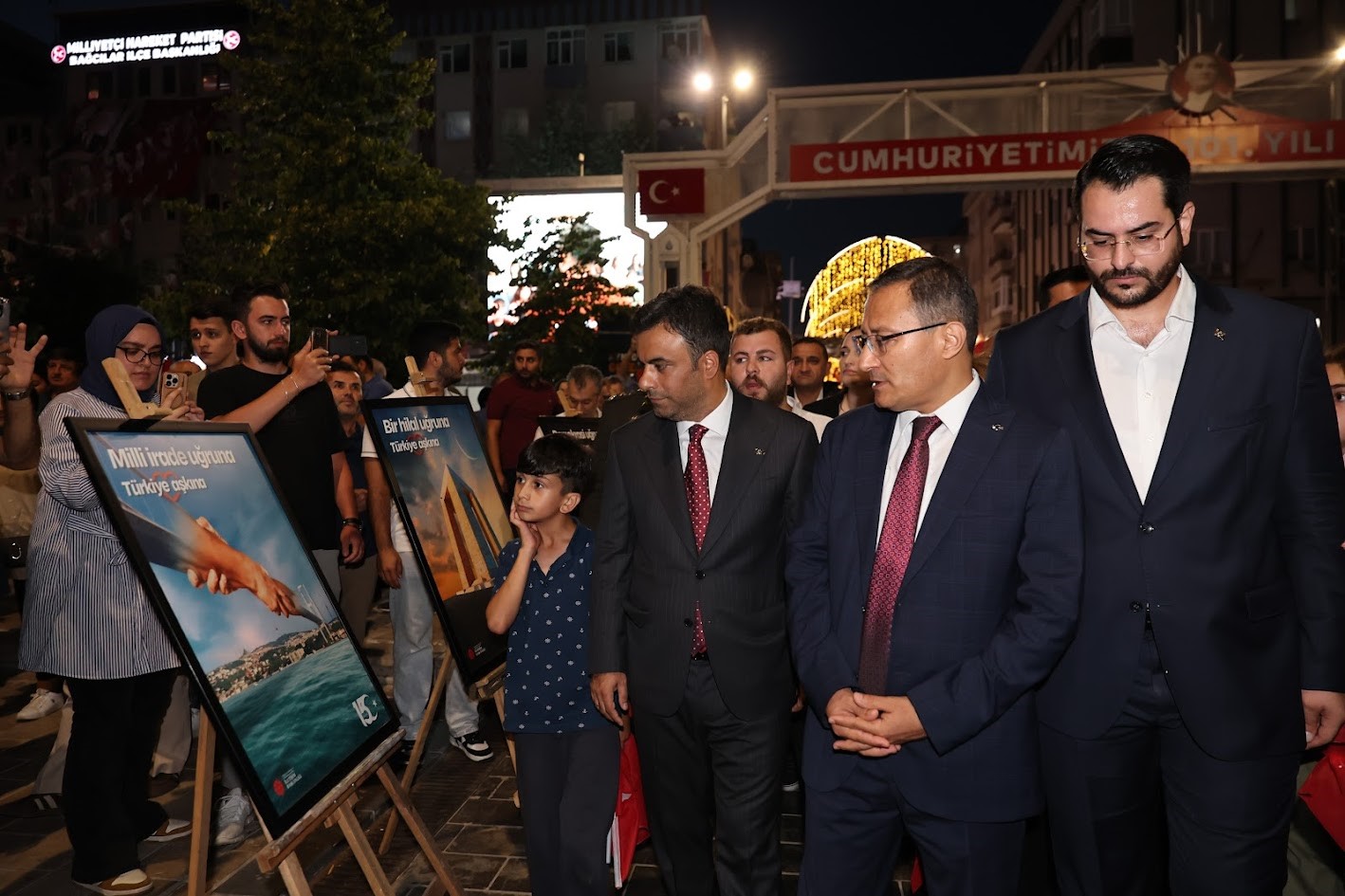Saat 21.00’da ise Demokrasi ve Birlik Yürüyüşü düzenlendi. Yaşlısından gencine her yaştan ilçe sakini ellerinde Türk bayraklarıyla birlikte Çarşı Caddesi’nde düzenlenen 15 Temmuz Demokrasi ve Birlik Yürüyüşü’ne katıldı. Bağcılar Meydanı’na kadar yürüyen katılımcılar, burada kurulan 15 Temmuz konulu resim sergisini de gezdi.