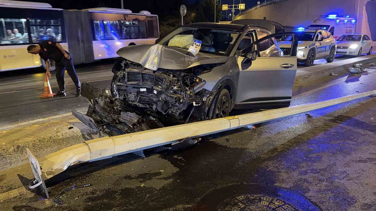 Arnavutköy’de, kontrolden çıkan otomobilih refüjdeki elektrik direğine çarptığı kazada 1’i çocuk 2 kişi yaralandı.