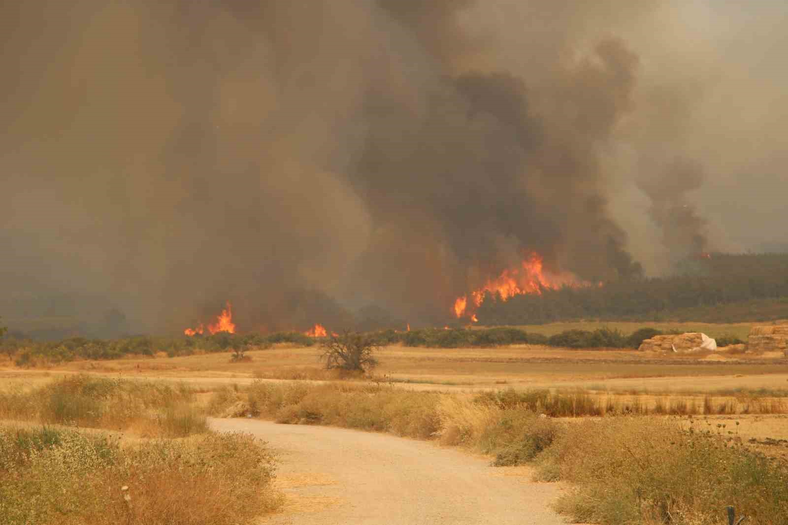 Öte yandan çiftçiler yangından tarlalarında zarar görmemesi için traktörlerle set oluşturuyor.