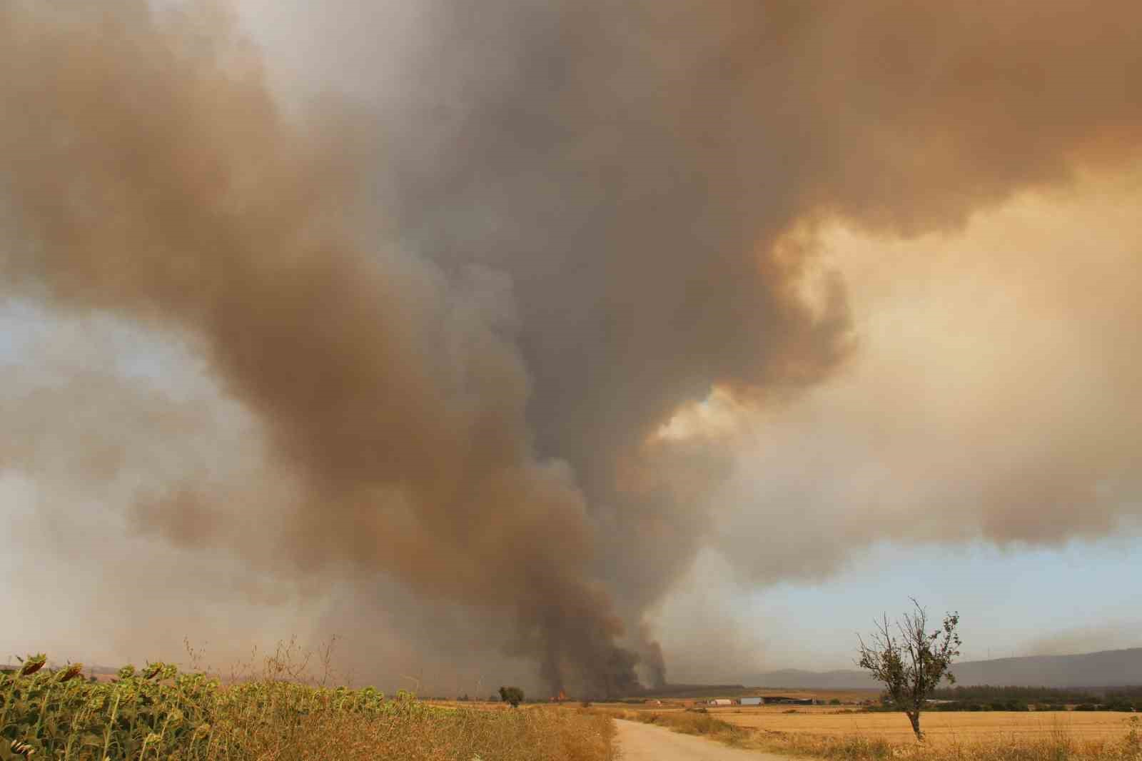 Tekirdağ Şarköy ilçesi Kocaali mevkiinde dün çıkan orman yangını kısa sürede tarım arazilerine ve yerleşim yerlerine sıçradı. Yangın, rüzgarın da etkisiyle dün gece saatlerinde Çanakkale’nin Gelibolu ilçesi sınırlarına ulaştı. Sabahın erken saatlerinde durgunlaşan yangın rüzgarın da etkisiyle tekrar parladı. Kuvvetli rüzgarın da etkisiyle yangın büyümeye devam ediyor. Köylüler büyümeye devam eden yangının bulunduğu Tekirdağ-Çanakkale sınırında bulunan hayvan damları ve hayvan çiftliklerindeki küçükbaş ve büyükbaş hayvanları yangından korumak için tarlalarında ortasında bekletiyor.