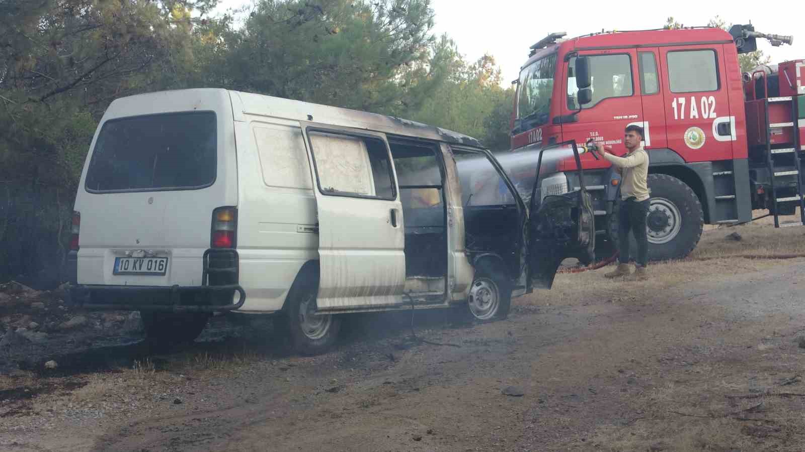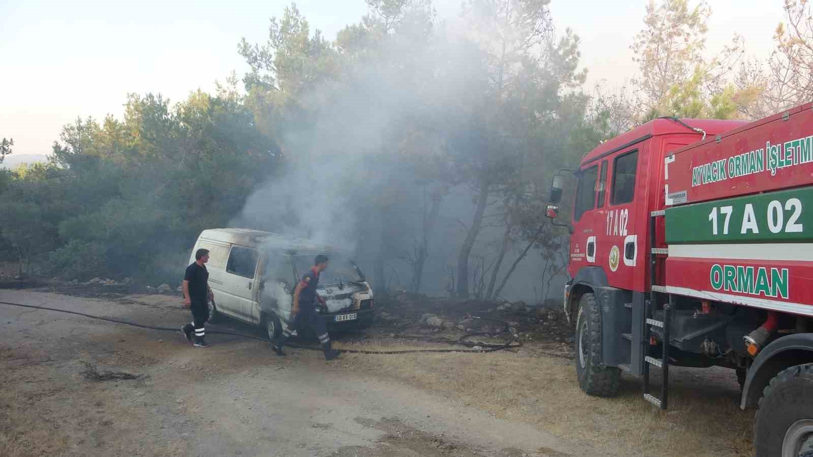 Çanakkale’nin Ayvacık ilçesinde arızalanan park halindeki midibüste çıkan yangın ormana sıçradı. Çıkan yangın erken müdahale ile büyümeden kontrol altına alındı.