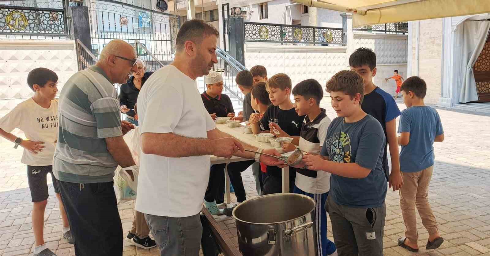 Emek Mahallesindeki Adnan Menderes Cami bahçesine kurulan çadırların altında kaynayan aşurenin kokusu tüm mahalleyi sardı. Namaz sonrası bin 200 kişiye aşure ikramı yapıldı. Aşurenin tadına camiye Kur’an ı Kerim eğitimine gelen öğrenciler de baktı. Mahalle halkının büyük ilgi gösterdiği aşureler kısa sürede tükendi. Metrelerce uzunluktaki aşure kuyruğu ise kameralara yansıdı.