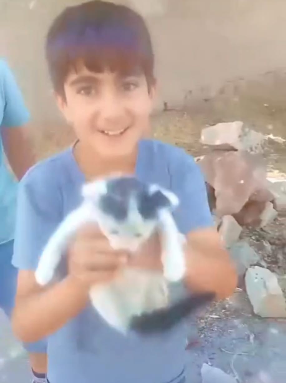 Patnos ilçesi Atatürk Mahallesi’nde oyun oynayan çocuklar, çevreden gelen kedi sesleri üzerine oyunu bırakıp sesin geldiği yönü takip etti. Çocuklar, sesin bölgedeki kullanılmayan ve üzeri taşlarla kapatılmış olan bir foseptik çukurundan geldiğini tespit etti. Çocuklardan biri, çevresindekilerin yardımıyla taşları kaldırarak dar çukura girip yavru kediyi çıkarmayı başardı. Mahalle sakinlerinin de yardımıyla kediye su ve yiyecek verildi. Yavru kedinin sağlık durumunun iyi olduğu öğrenilirken, o anlar cep telefonuyla kaydedildi. Sosyal medyada yayılan görüntüler büyük beğeni topladı.