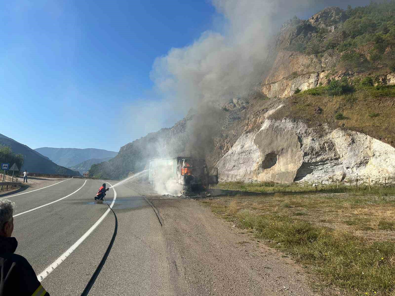 Edinilen bilgilere göre, Mikail Tatar yönetimindeki tır, Artvin-Borçka karayolunun 14. kilometresinde henüz bilinmeyen bir nedenle yanmaya başladı. Sürücünün durumu fark ederek aracı yol kenarına çekmesiyle birlikte olay yerine Artvin Belediyesi itfaiye ekipleri sevk edildi. Kısa sürede bölgeye ulaşan ekipler, alevlere müdahale ederek yangını kontrol altına aldı. Yangın söndürülürken tırda büyük çapta maddi hasar oluştu.