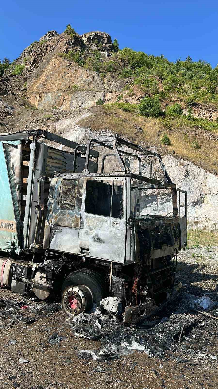 Artvin-Borçka karayolunda seyir halindeyken alev alan tır, itfaiye ekiplerinin müdahalesiyle söndürüldü. Yangın sonucu araçta büyük çapta hasar meydana geldi.