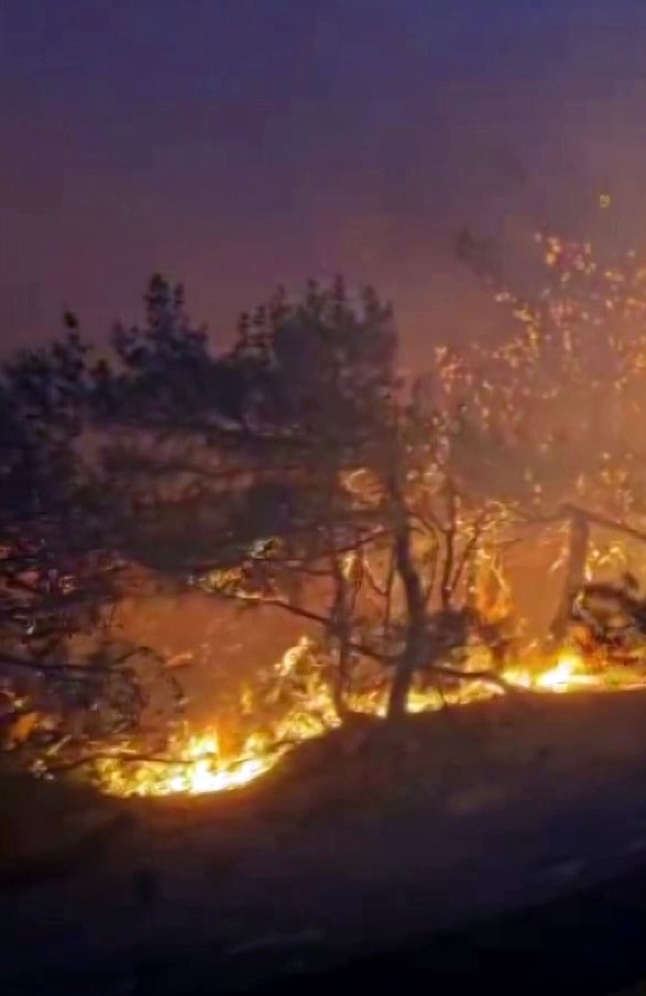 Hacılar Mahallesi’nde ormanlık alanda çıkan yangın rüzgarın da etkisi ile büyüyerek kısa bir sürede geniş bir alana yayıldı. Yangının yerleşim alanlarına sıçramasını önlemek amacıyla, tedbiren Taşoluk ve Hacılar Mahallesi tahliye edildi. Alevlerin sıçradığı mahallede çok sayıda ev tamamen yanarken, yangının Bayat Mahallesi’ne ulaşmaması için yoğun bir çaba yürütülüyor. Bölgede söndürme çalışmalarına katılan itfaiye ve orman ekipleri zaman zaman zor anlar da yaşıyor. Alevleri söndürebilmek için cansiperane mücadele eden ekip alevlerin arasında kaldı. Görüntülerde, bazı ekiplerin alevlerin tam ortasında kaldığı, araçların yangın hattı içinden geçerek bölgeye ulaştığı anlar dikkat çekti. Aşırı ısı, yoğun duman ve çökme riskiyle karşı karşıya kalan ekipler, kontrol hattı oluşturmak için canla başla çalışıyor.