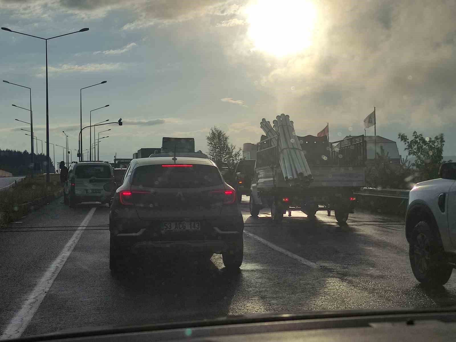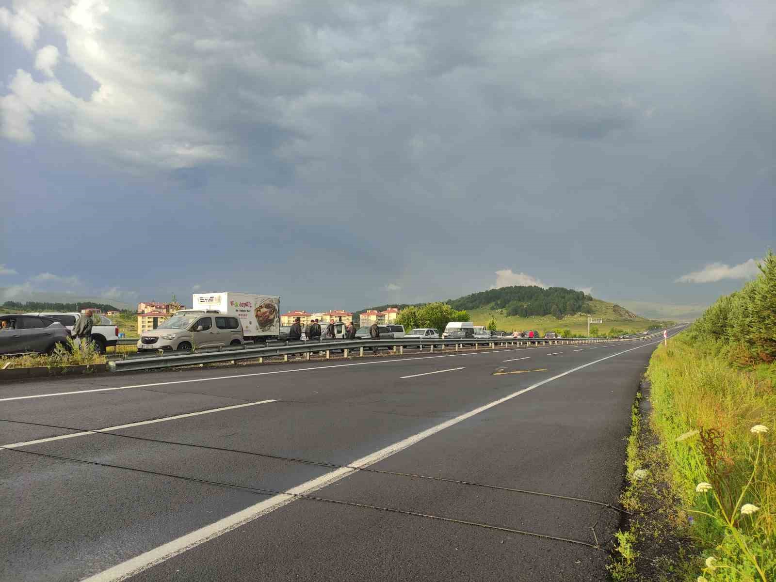 Ardahan’da sağanak yağış hayatı olumsuz etkiledi. Sağanakla birlikte kayganlaşan yolda bir tırın kayması sonucu meydana gelen kaza nedeniyle yol kapanırken, yaklaşık 4 kilometrelik araç kuyruğu oluştu.