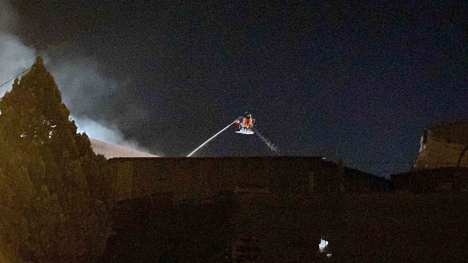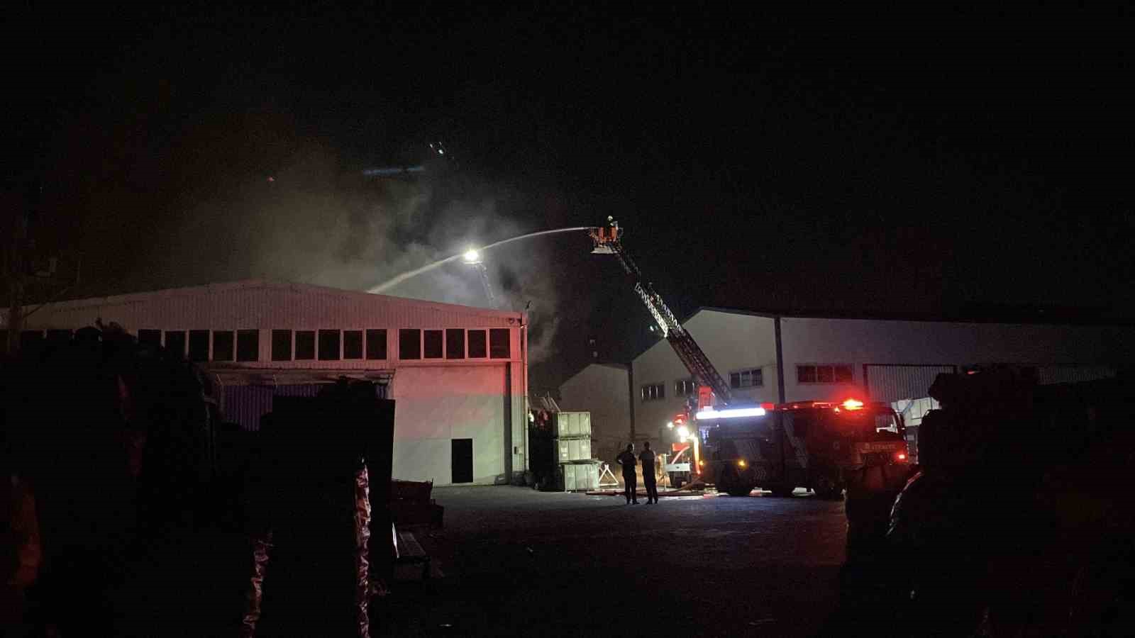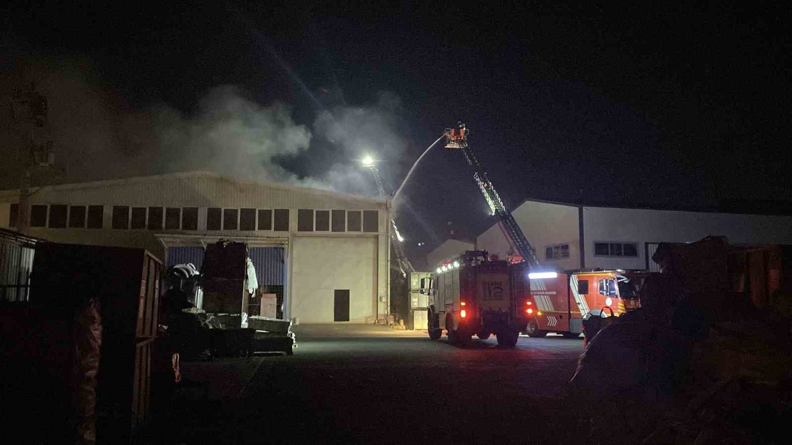Yangın nedeniyle iş yerinde hasar meydana gelirken, soğutma çalışmaları devam ediyor. Yangınla ilgili inceleme başlatıldı.