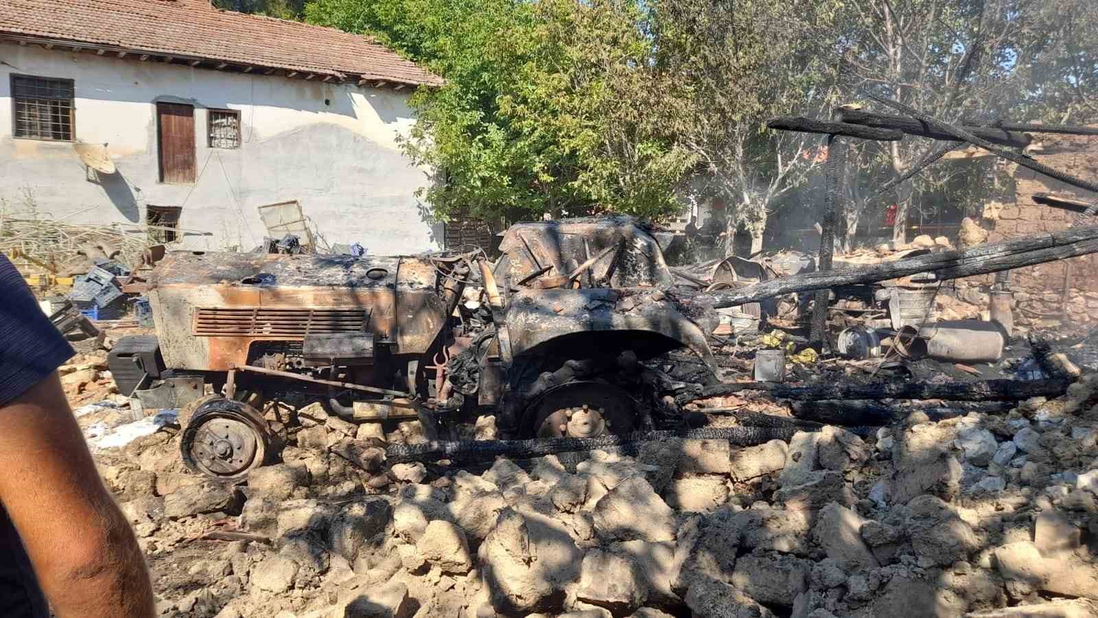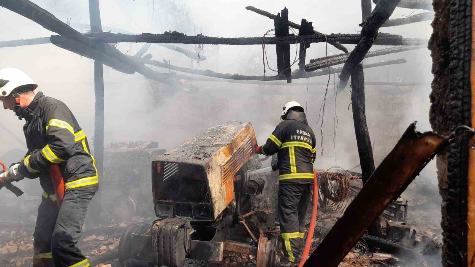 Tokat’ın Erbaa ilçesinde samanlıkta çıkan yangında 2 traktör, 1 buçuk ton buğday, 1 ton gübre, 250 litre mazot ve çeşitli tarım aletleri yanarak kullanılamaz hale geldi.