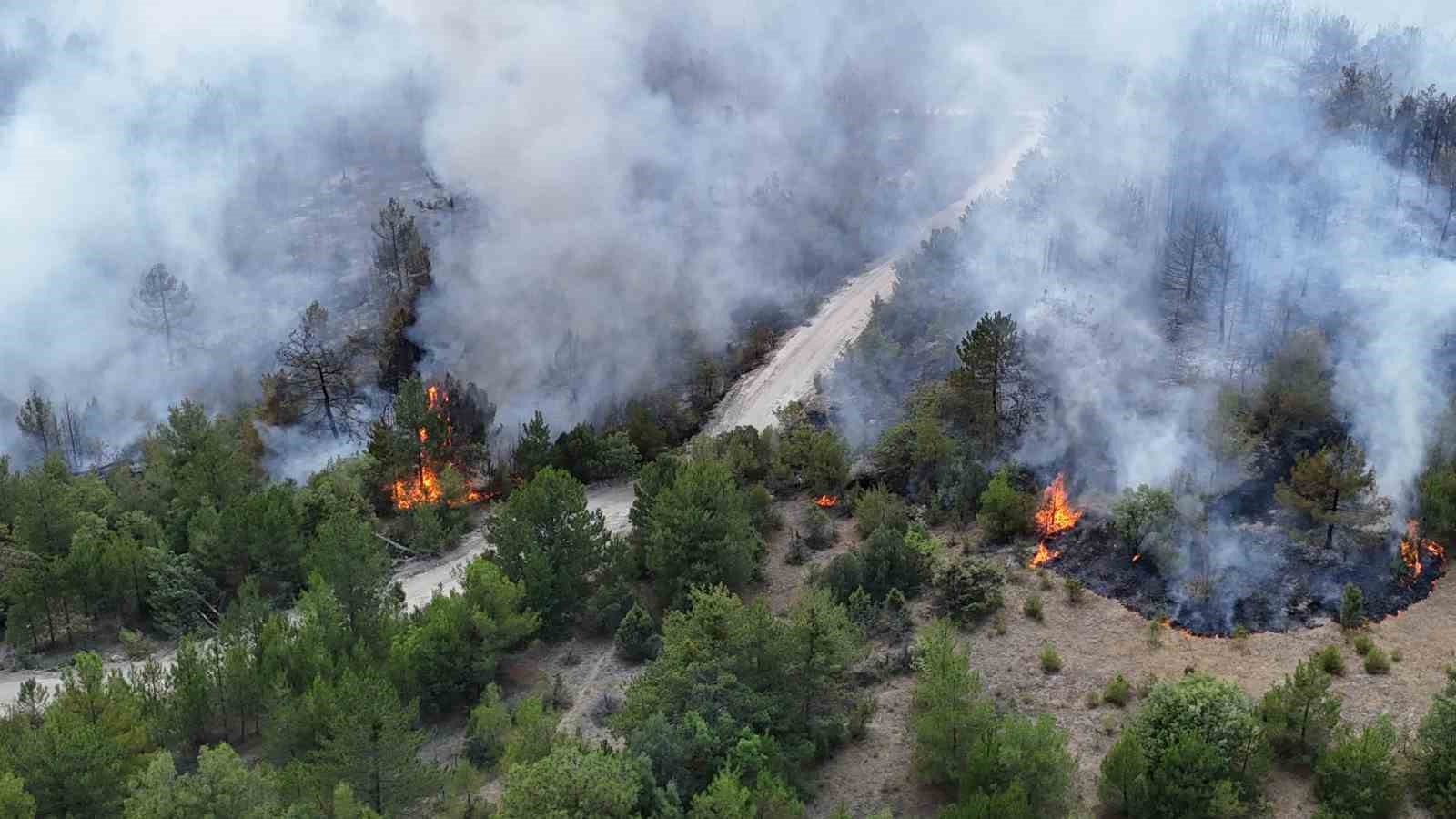 Arazinin sarp ve dağlık olması karadan müdahaleyi zorlaştırırken 6 helikopter ve iki yangın söndürme uçağı ile kesintisiz söndürme çalışmaları devam ediyor