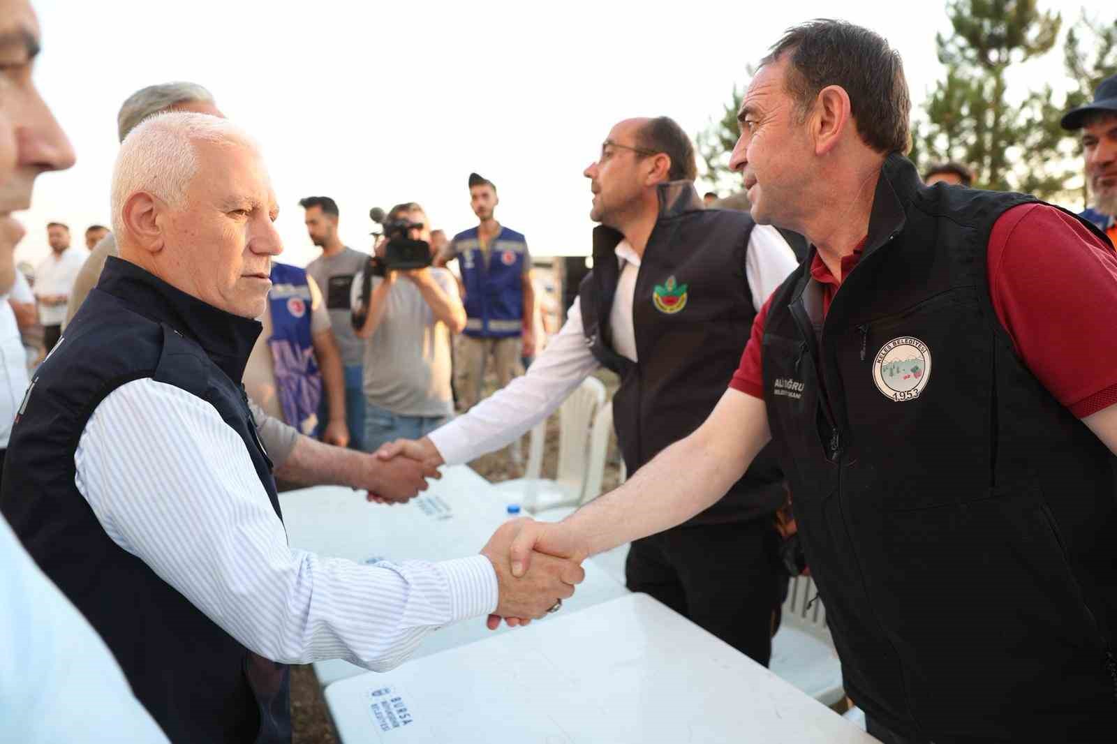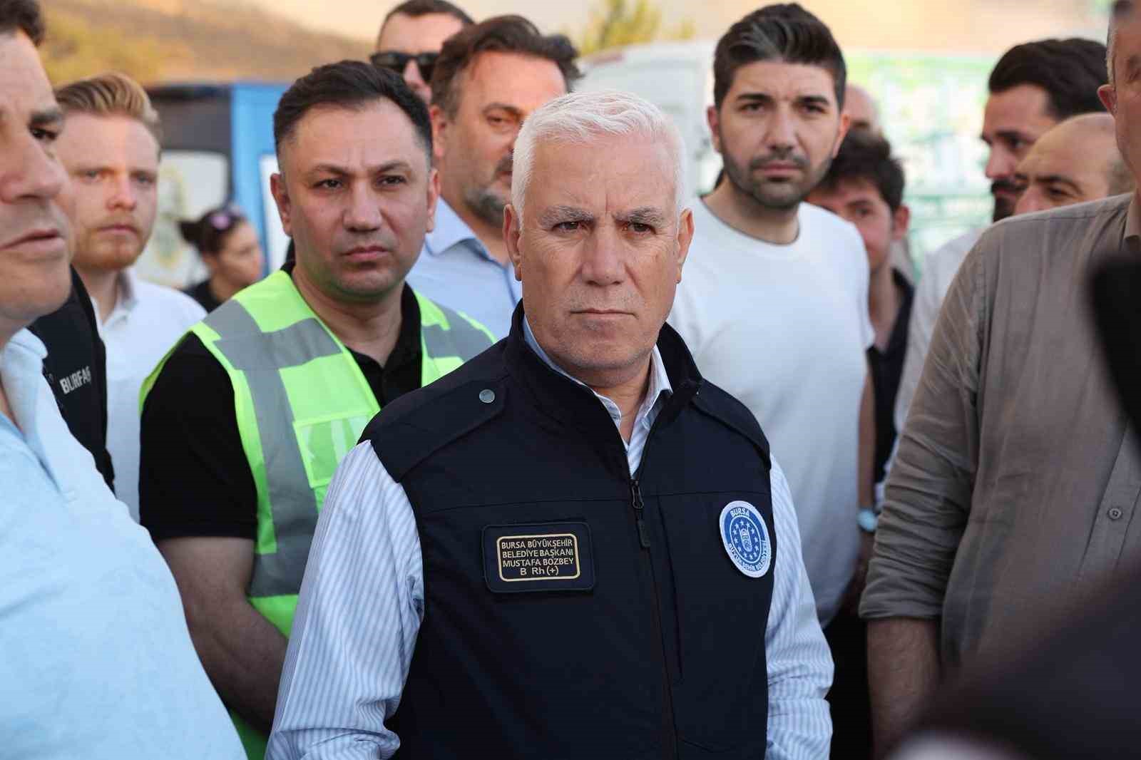 Gürsu bölgesindeki yangınla mücadele çalışmalarının da aralıksız sürdüğünü anlatan Başkan Bozbey, bölgeden üzücü bir haber aldıklarını da dile getirdi. Yangın söndürme çalışmalarına katılmak için şehir dışından gelen bir tankerin şarampole yuvarlanması sonucu bir kişinin vefat ettiğini, iki kişinin de yaralandığını söyleyen Başkan Bozbey, “Vefat eden kardeşimize Allah’tan rahmet diliyorum. Yaralılara da şifalar diliyorum. Yangının söndürülmesi için çalışmalara katılan her bir vatandaşımıza teşekkür ediyorum. Bursa’da tüm halkımız dayanışmanın, bütünleşmenin örneğini bu yangında da ortaya koydu. İtfaiye teşkilatımız ve AKOM yapılanmamız AFAD ile birlikte Valiliğimizin koordinasyonunda sahada mücadele ediyor. Herkes görev ve sorumluluğunu fazlasıyla yerine getiriyor. Yanan alanları soğutma çalışmalarının ardından Valiliğimiz öncülüğünde yeşile dönüştürme projesini başlatacağız. Bizler bir yerine 5 ağaç dikerek destek olacağız” dedi.