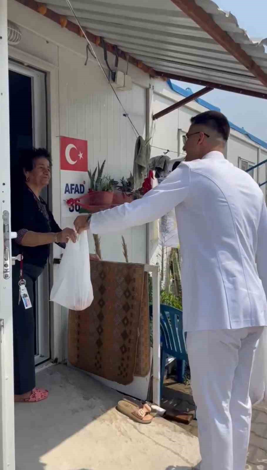 Hatay’ın İskenderun ilçesinde üniversite eğitimi alan Ramazan Altun, mezuniyetiyle birlikte adadığı kurbanı kestirerek konteyner kentte dağıttı. Yaptığı davranışla sosyal medyada binlerce insanın ilgi odağı olan Altun, depremde yıkılan evinin enkazından sağ çıktığını söyledi.