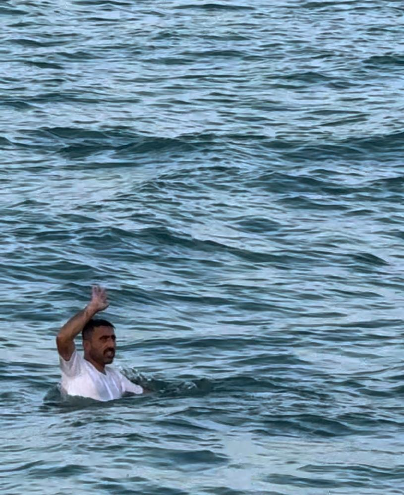 Olay anı çevredeki vatandaşlar tarafından cep telefonu kameralarıyla saniye saniye kaydedildi. Görüntülerde şahsın denizdeki bekleyişi ve teslim olma anı yer aldı.