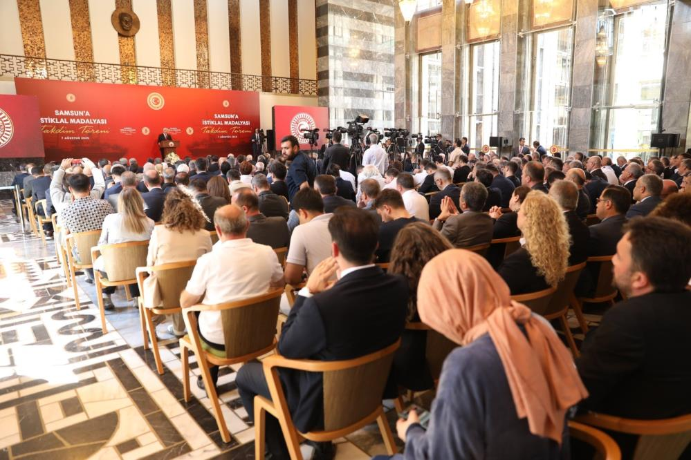 Konuşmaların ardından Samsun Valisi Orhan Tavlı’ya, TBMM Başkanı Numan Kurtulmuş ve Milli Savunma Bakanı Güler tarafından İstiklal Madalyası ve Beratı takdim edildi.