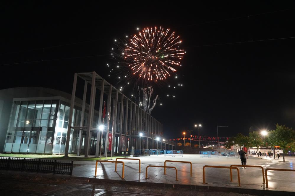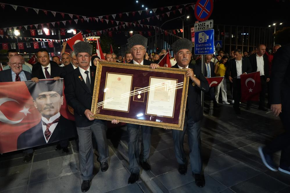 Ellerinde Türk bayraklarıyla törene eşlik eden vatandaşlar, Zafer Bayramı coşkusunu hep birlikte yaşadı. Kutlama programı, havai fişek gösterisiyle son buldu.