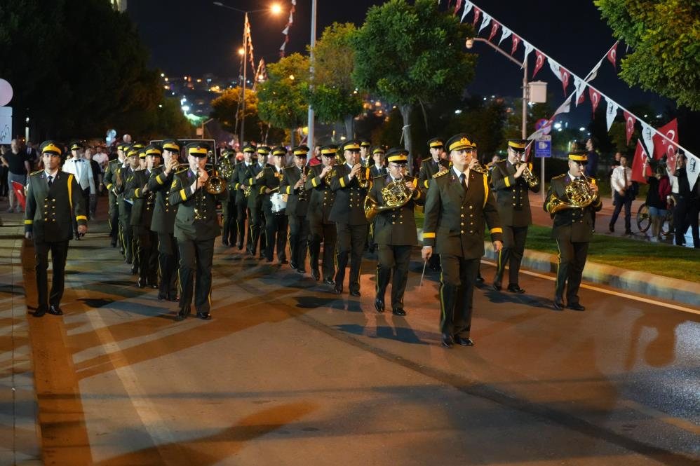 Askeri bando eşliğinde gerçekleştirilen yürüyüşe protokol üyeleri, vatandaşlar, kamu kurum ve kuruluşlarının personeli, askeri erkan, bayrak ve flama ekipleri ile gaziler katıldı. Tütün İskelesi’nde düzenlenen törende saygı duruşunda bulunuldu, İstiklal Marşı okundu ve şehitler için dua edildi.