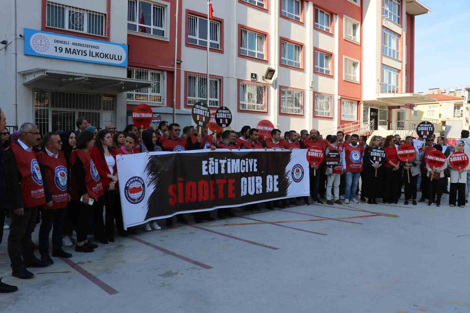 Denizli’de öğrencilerini taciz ettiği ve kendisine “Kan akacak” diyerek tehdit etmesi üzerine kantin işletmecisinin oğlu hakkında şikayette bulunan okul müdürünün silahlı saldırıya uğraması hakkında eğitimciler eylem yaptı.