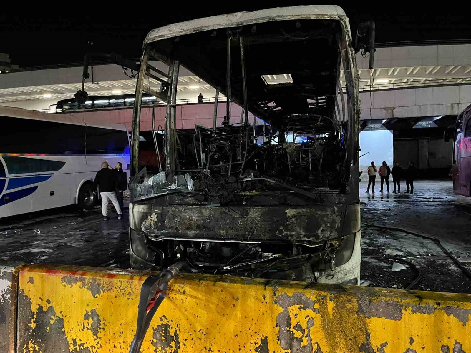 AŞTİ’de otobüs yangını paniğe neden oldu