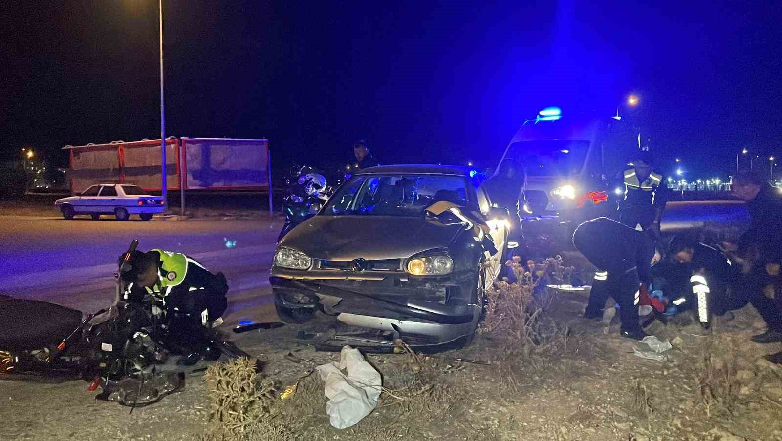 Karaman’da otomobil ile çarpışan motosikletin sürücüsü yol kenarına savrularak yaralandı.